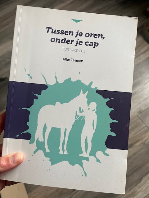 Zelf ondervind ik de laatste tijd veel hinder van dat mentale stukje. Sinds ik van Noblesse ben afgevallen en een ruggenwervel heb gebroken, ben ik veel bezig in mijn hoofd met allerlei rampscenario’s. En laat ik heel eerlijk zijn: ik was al niet zo’n held. Om mezelf een extra steuntje in de rug te geven en meer inkijk te krijgen in de ruiterpsyche, heb ik het boek ‘Tussen je oren, onder je cap’ van Afke Teunen gekocht.